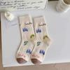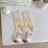 Cute Cartoon Print Women Cotton Socks Spring Autumn Soft Sweet Floral Middle Tube Sock JK Korean Harajuku Girls Socks Sokken