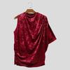 INCERUN Men One Shoulder Backless Velvet Glitter Ruffled Tops Casual T-shirts