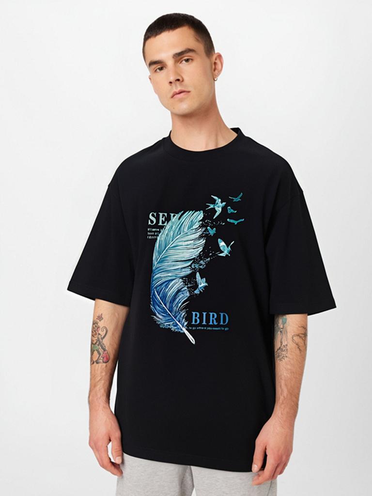 10 Colors Feather Man's Short Sleeves Loose T-shirt 100% Cotton Casual Tee Size S-5XL