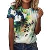 Summer Round Neck 3D Love Flower Print Top Fashionable Casual Short Sleeved Women's T-shirts