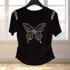 Summer Round Neck Butterfly Diamond Short-sleeved T-shirt Women's Fashion Top Women