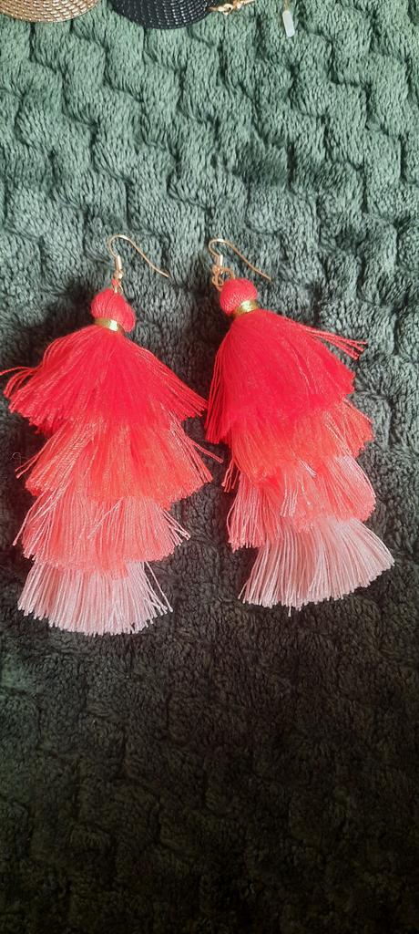 Ethnic Silk Fabric Gradient Boho Dangle Drop Earrings Long Tassel Earrings Bohemian Multilayer Drop