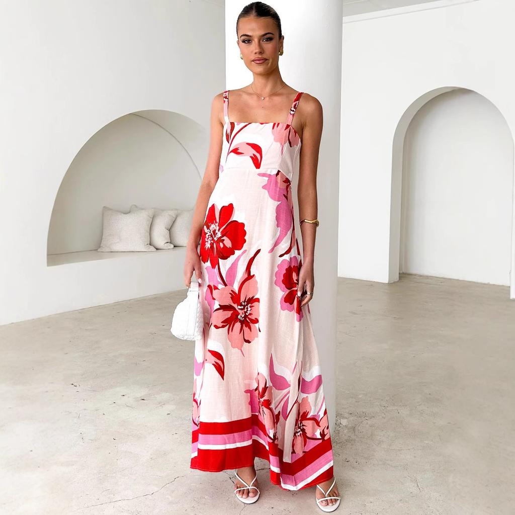 Style - Women's Boho Floral Dresses,Summer Maxi Dress, Boho Loose Spaghetti Strap Dresses,Square Neck Dresses,Long Maxi Wedding Dresses,Summer Dress,Beach Dress