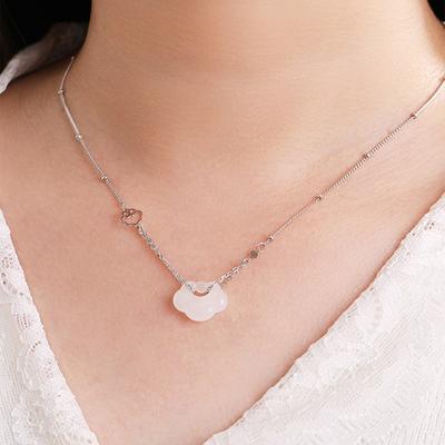Ping An Lock Hetian Jade Necklace Exquisite And Simple White Chalcedony Pendant Tide Jade Xiangyun Clavicle Chain
