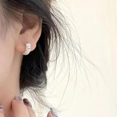 Sweet Girl Brushed Smiley Face Ear Buckle Female Niche Temperament Cute Earrings Versatile Small Fresh Matte Smile Ring