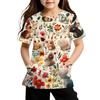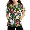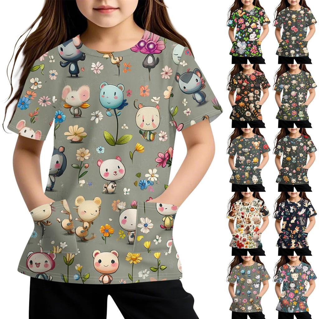 Children's Short Sleeve Pocket Tops Casual Print T Shirt Round Neck Pullover Blouse