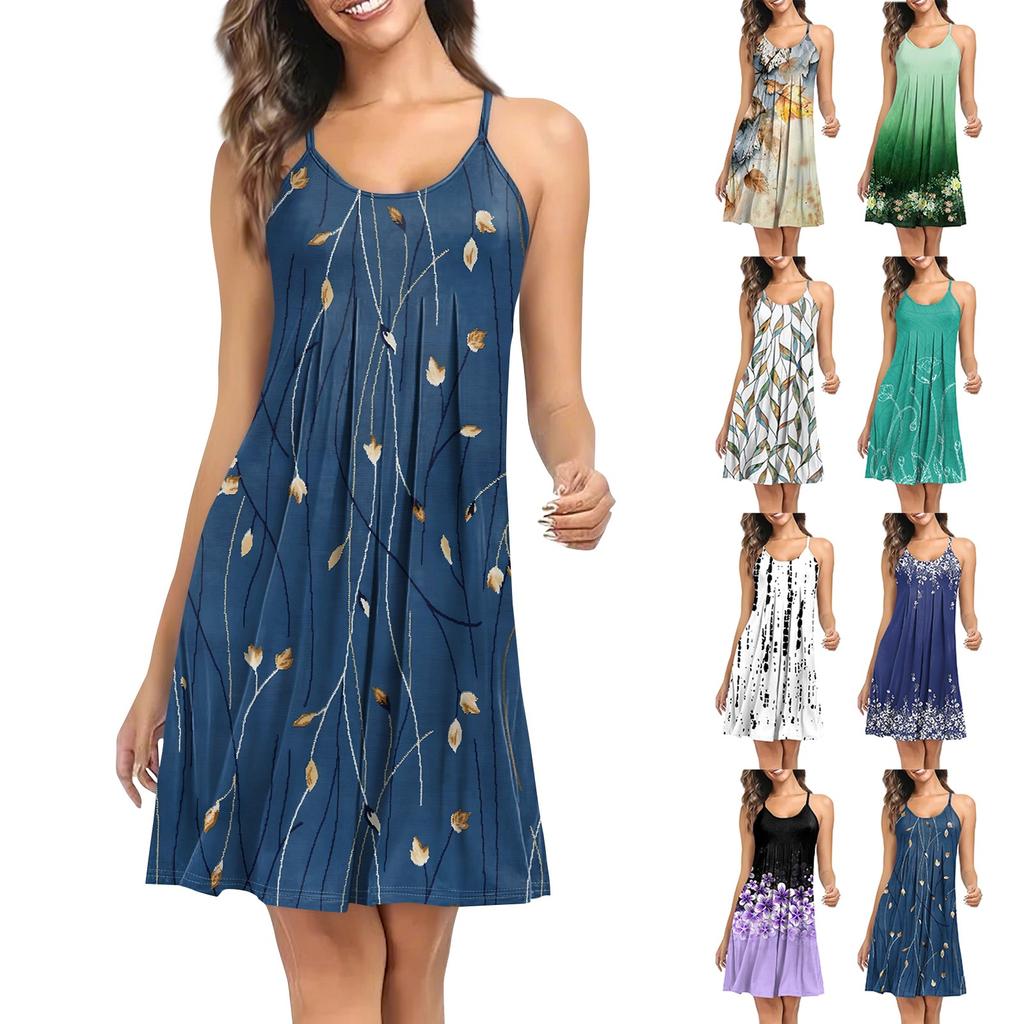 Women's Printed Sleeveless Shoulder Strap Workwear Sleepwear Dress