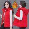 Women's Hooded Lambskin & Velvet Warm Vest - Detachable, Thick Down Cotton Jacket for Autumn & Winter, Ideal for Middle-Aged Mothers
