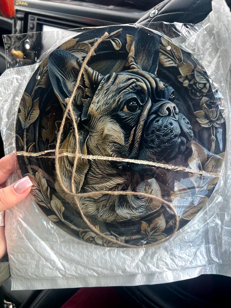 Wood Unique Handcrafted French Bulldog Inlay Wooden Sign, Circular Wall Plaque Decoration with Intricate Design, 1PC, for Door, Wall, Home, Room