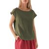 GMXIA Women's Linen Casual Loose Fashion Short Sleeve T-shirt Solid Color Crewneck Top