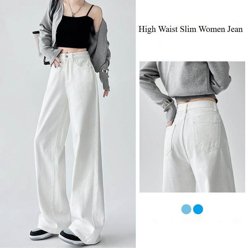 High Waist Wide Leg Denim Pants Women's Spring 2025 New Style Slimming Drapey Loose Floor-Length Narrow Straight Cut Trousers