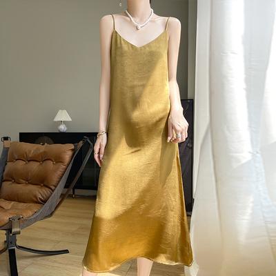 Silk Satin Spring Summer Ladies Swing Neck Jacquard Temperament Slimming Slip Dress with Silk Slip Slip Dress