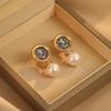 Zircon Pearl Two-Color Ancient Coin Series Earrings Women'S Fashion Retro Stud Earrings Niche Design High-End Earrings