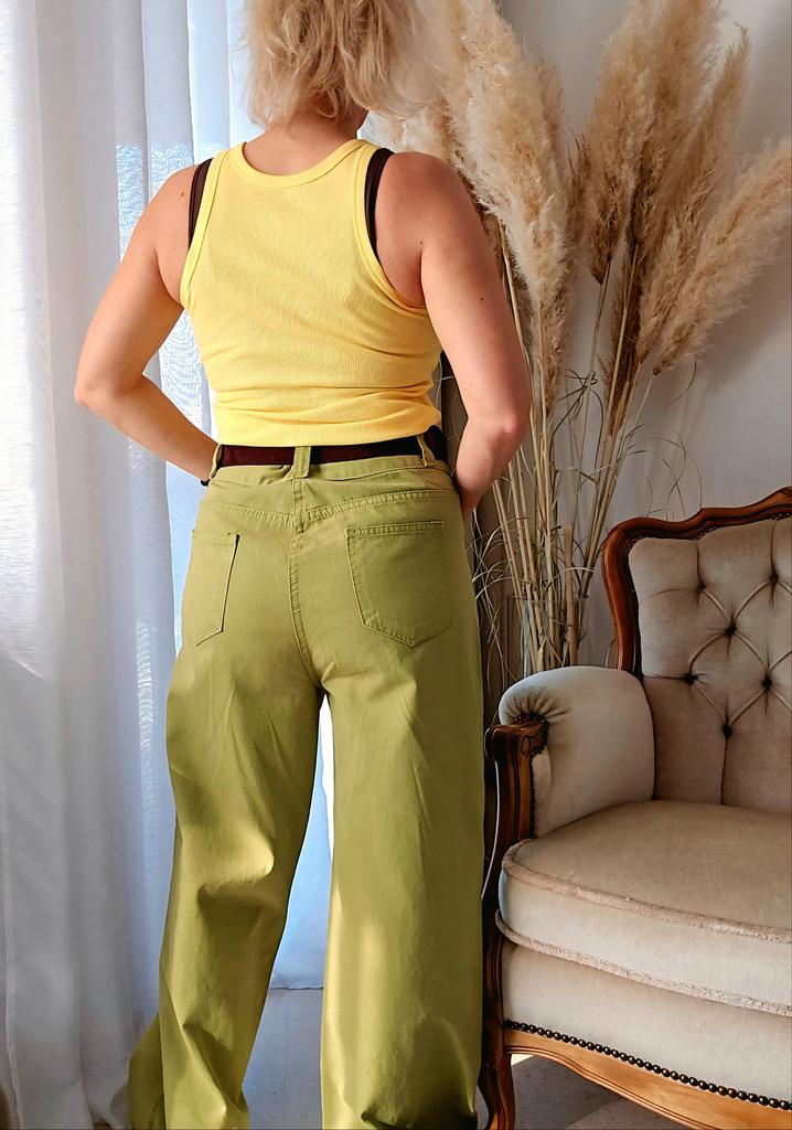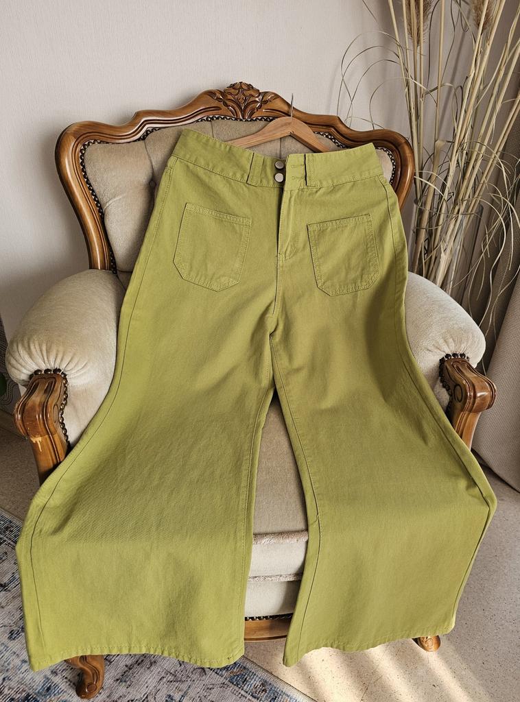 Fashion Loose Fit Wide Leg Denim Pants for Women, Casual Green Long Trousers
