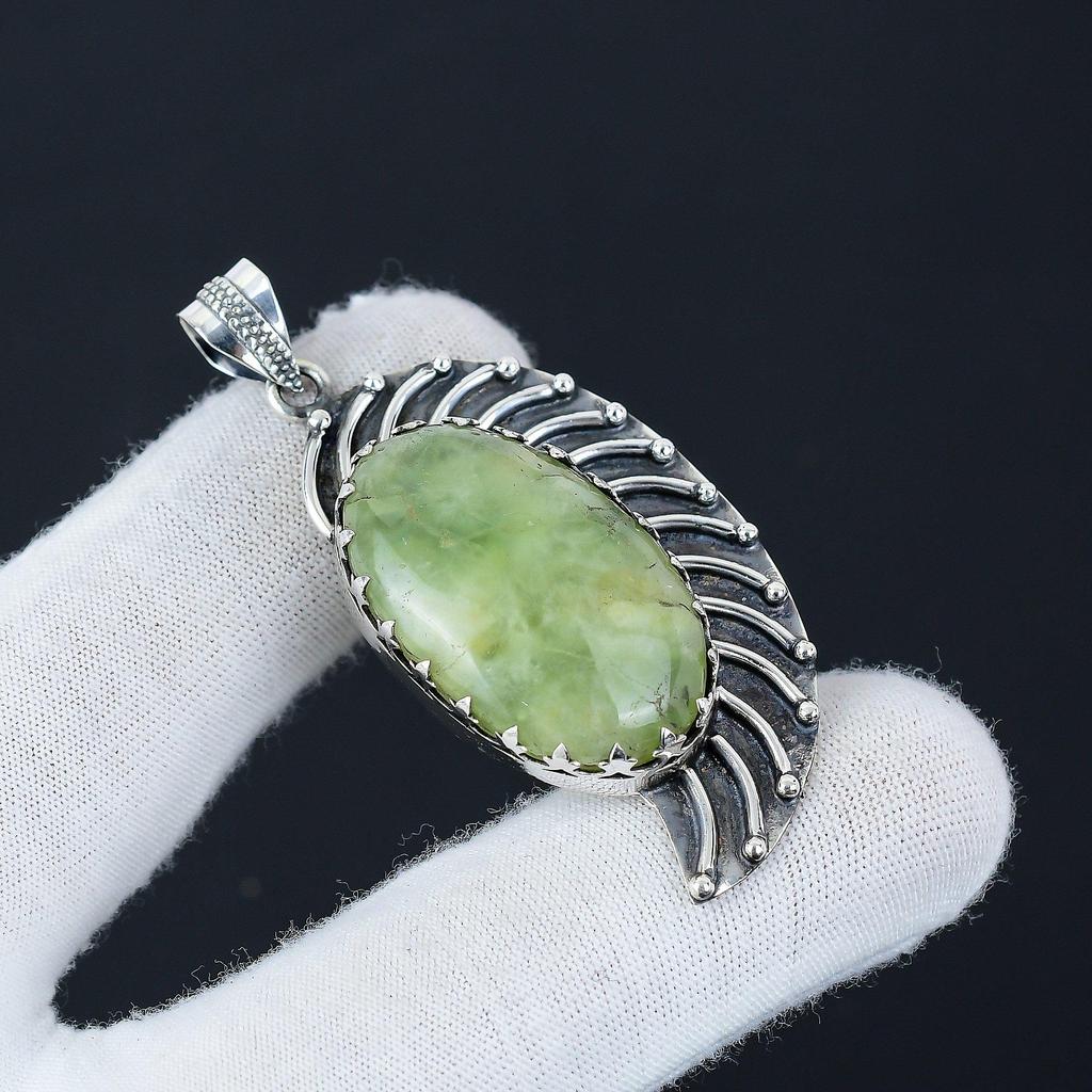 Natural Prehnite Gemstone Silver Pendant In 925 Sterling Silver- Handmade Design, Everyday Wear Jewelry, Unique Pendant Gift For Her