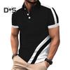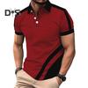 Men's Lapel T-Shirt Slim Fit Polka Dot Polyester Tee Shirt Color Block Summer Casual Short Sleeve Top for Daily Wear Sports Street