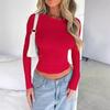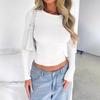Women's New Solid Colour Slim Round Neck Short Long-sleeved Blouse