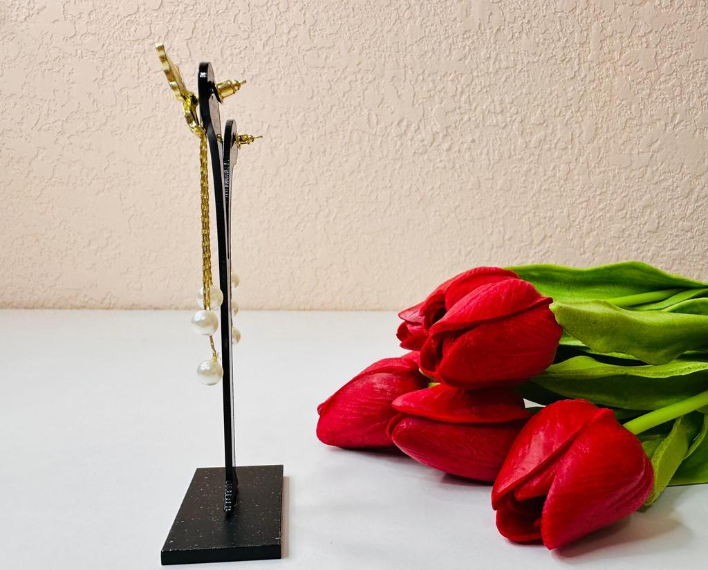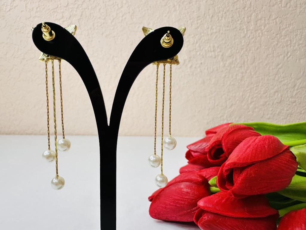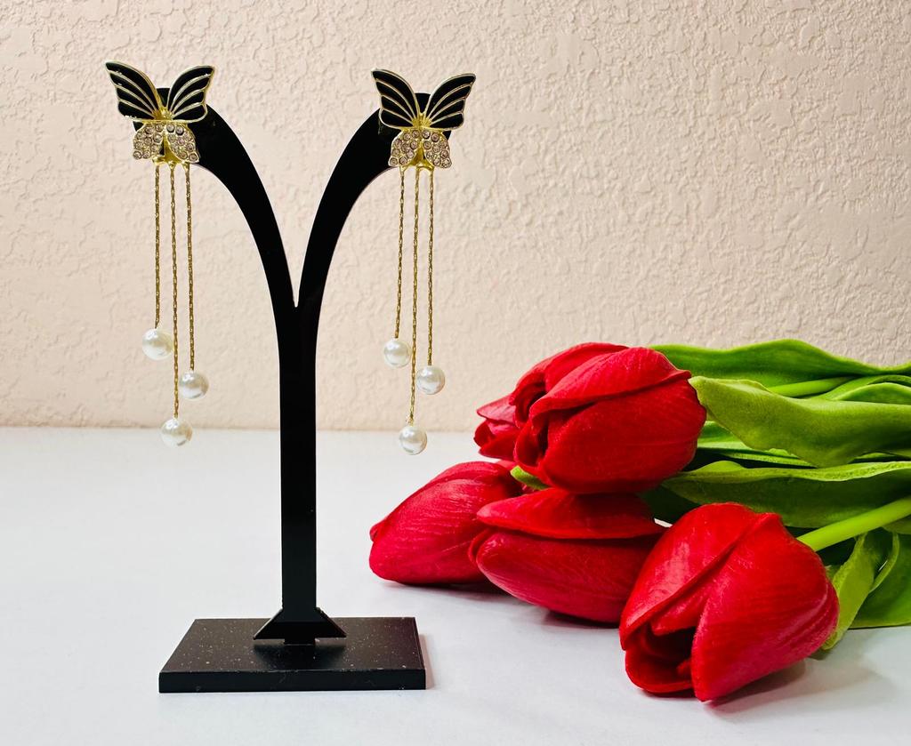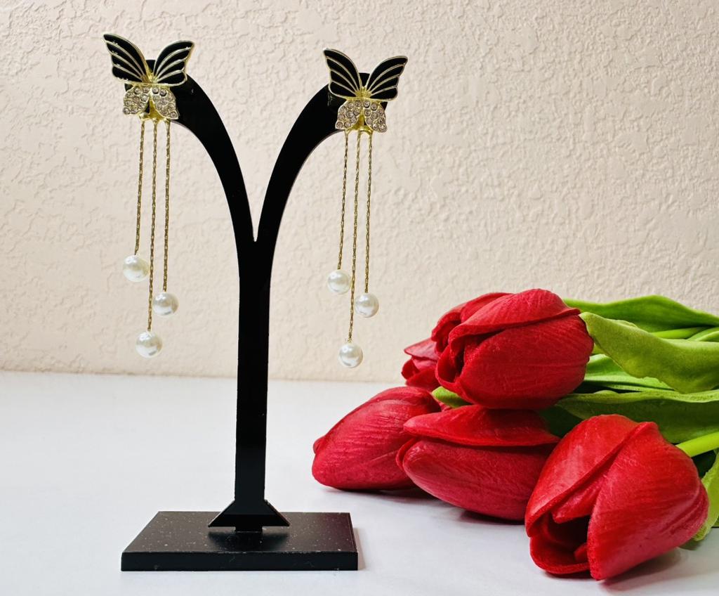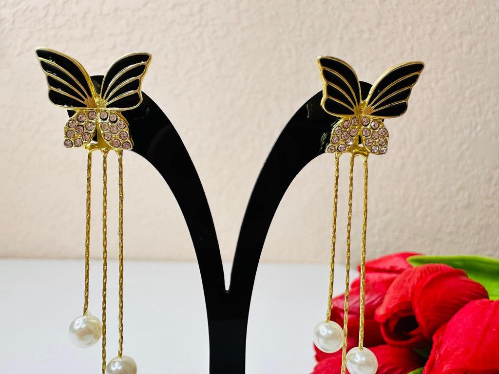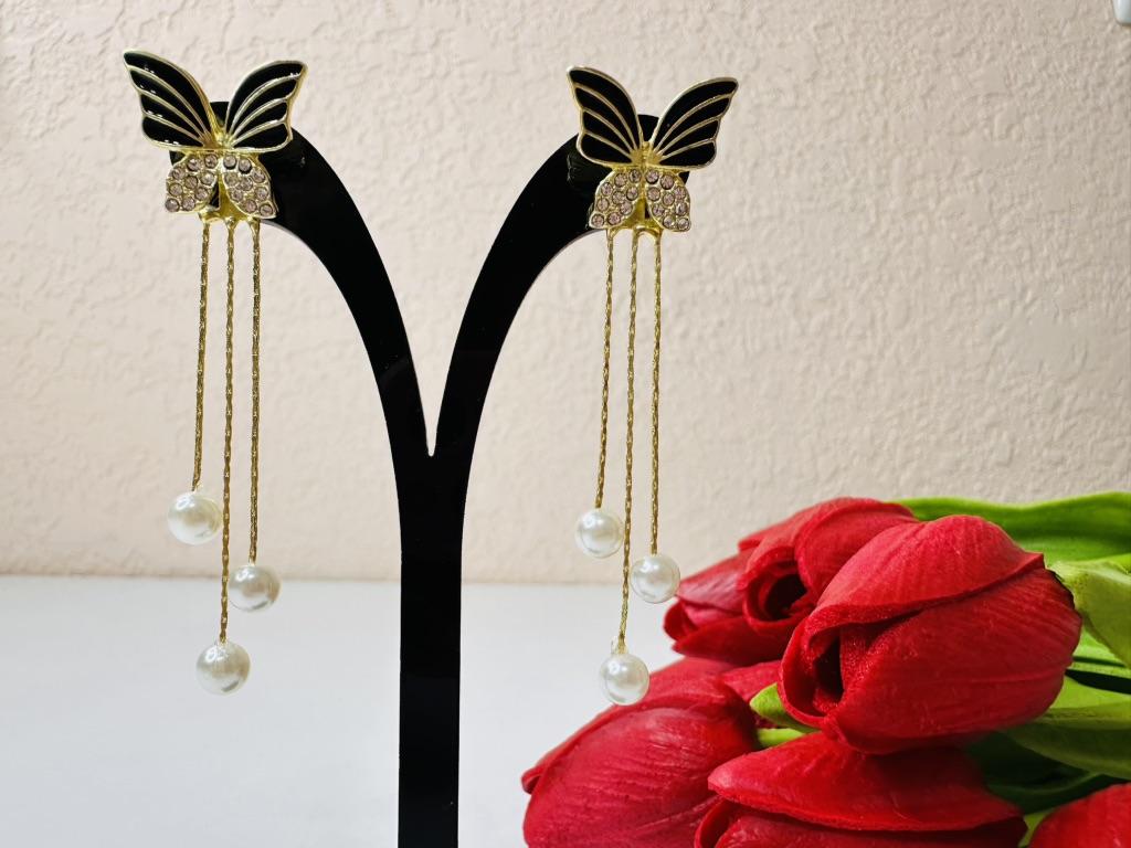 Gorgeous and very dressy earrings with butterflies and faux pearls in gold finish.Came on cardboard display in 15 days to Ireland.Happy Shopping!
