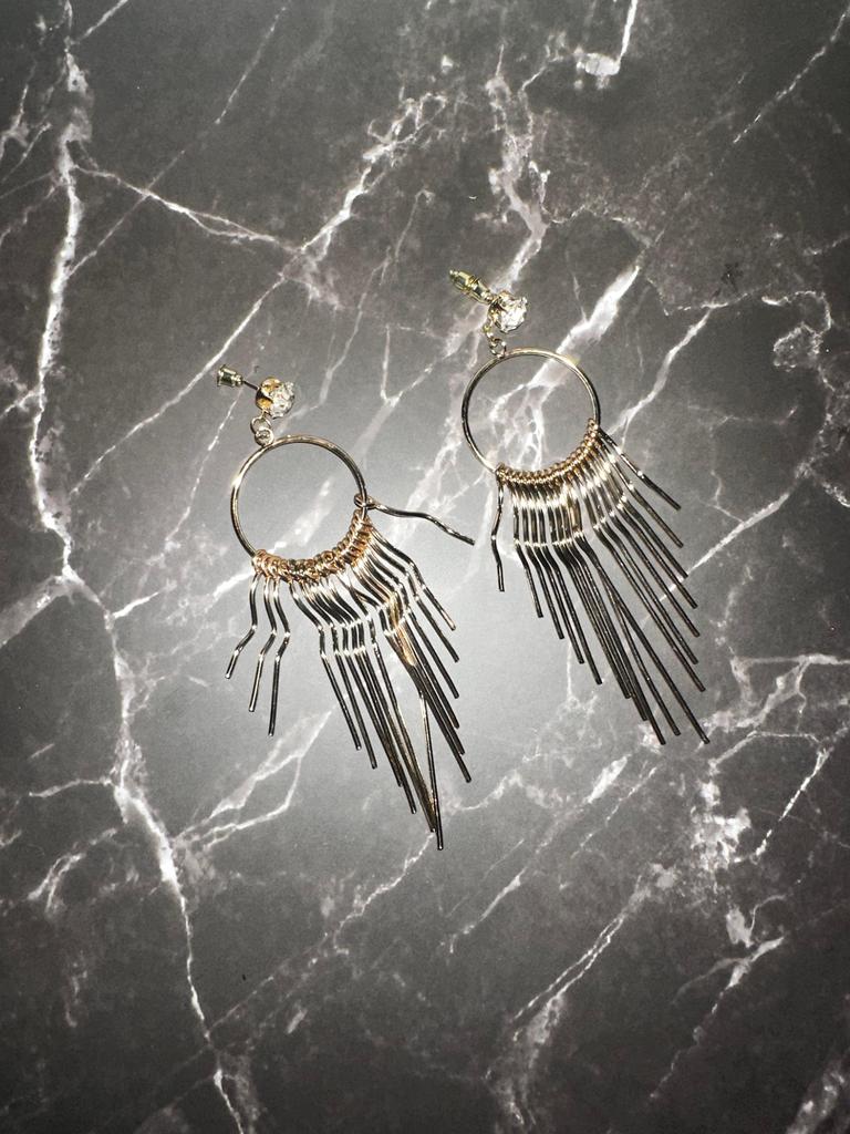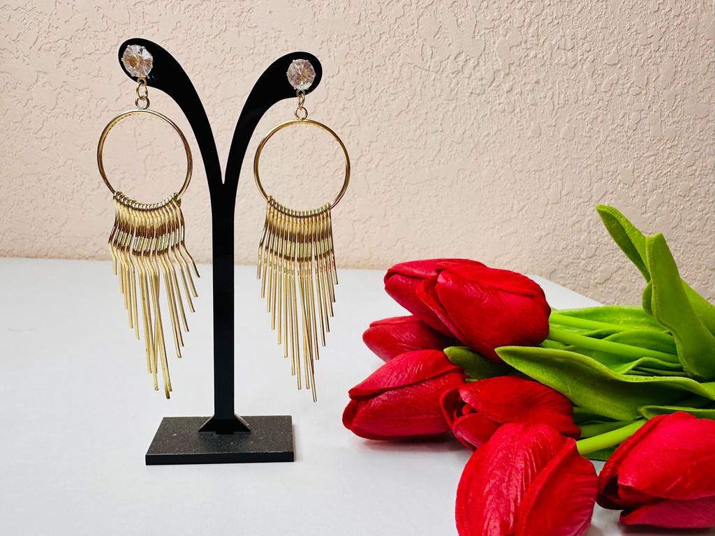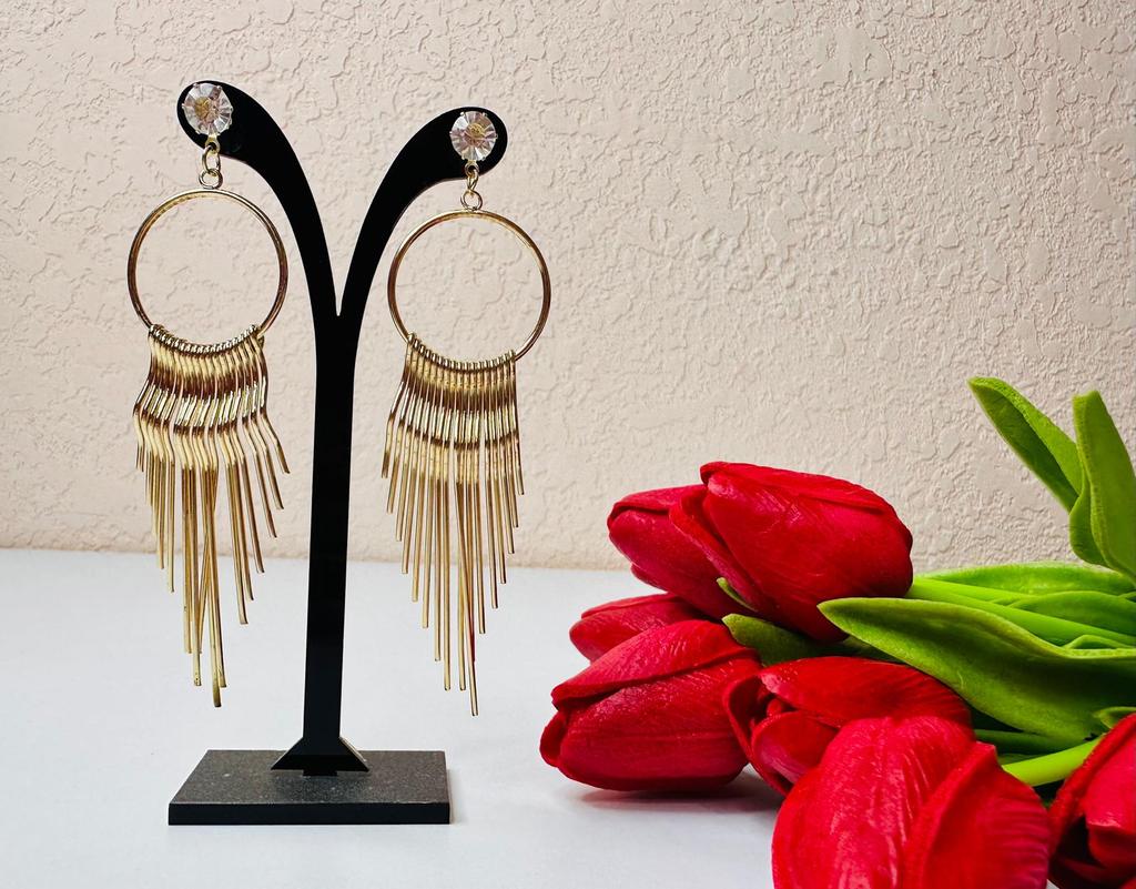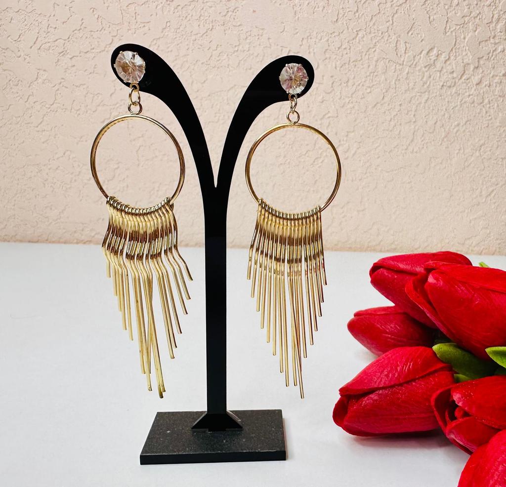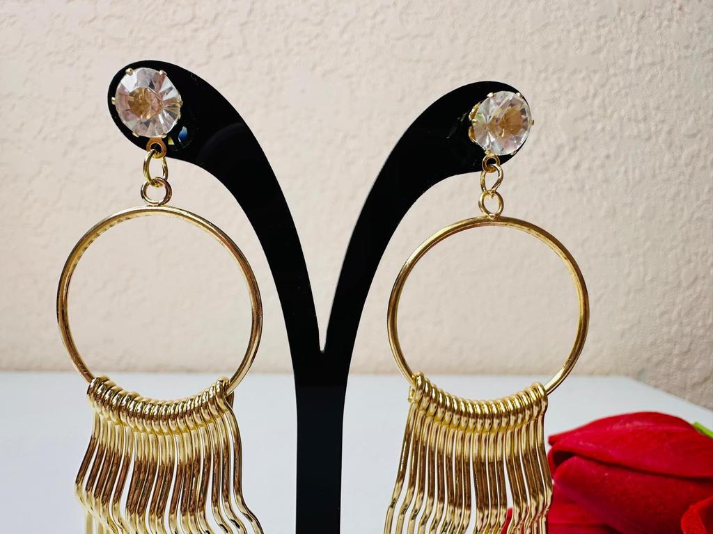 Korean Version of Zircon Exaggerated Women's European and American Metal Long Fringed Earrings Fashion Studs Earrings Jewelry