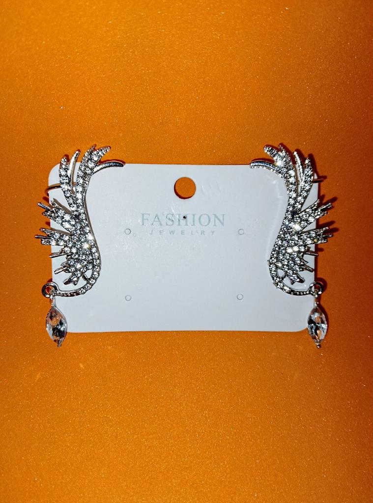 EARRINGS Elegant style earrings with a small pendant. They depict an angel wing covered in crystals. They are very bright. They arrived in Italy with tracked shipping in 16 days. Super fast shipping. Well wrapped in a sheet of bubble wrap they arrived intact. Packaging: They come in a plastic bag with a cardboard support. Excellent quality-price ratio. The metal color is silver zinc alloy. Back closure: metal. No glue stains and no defects. The purchase is recommended👌👌👌👌👌