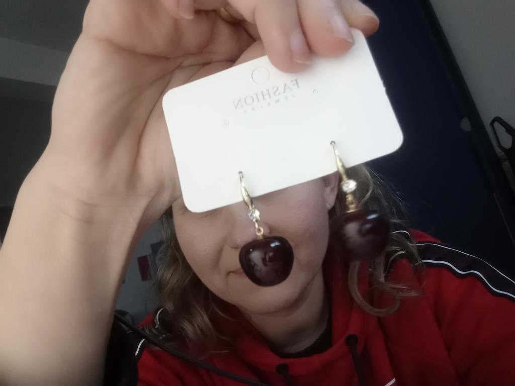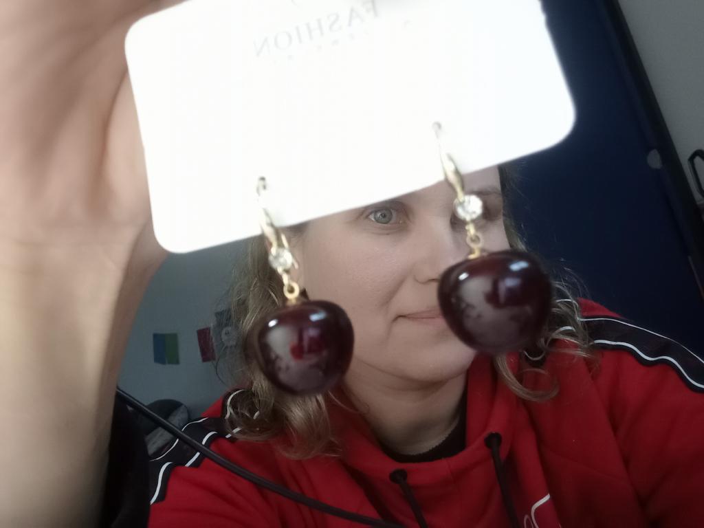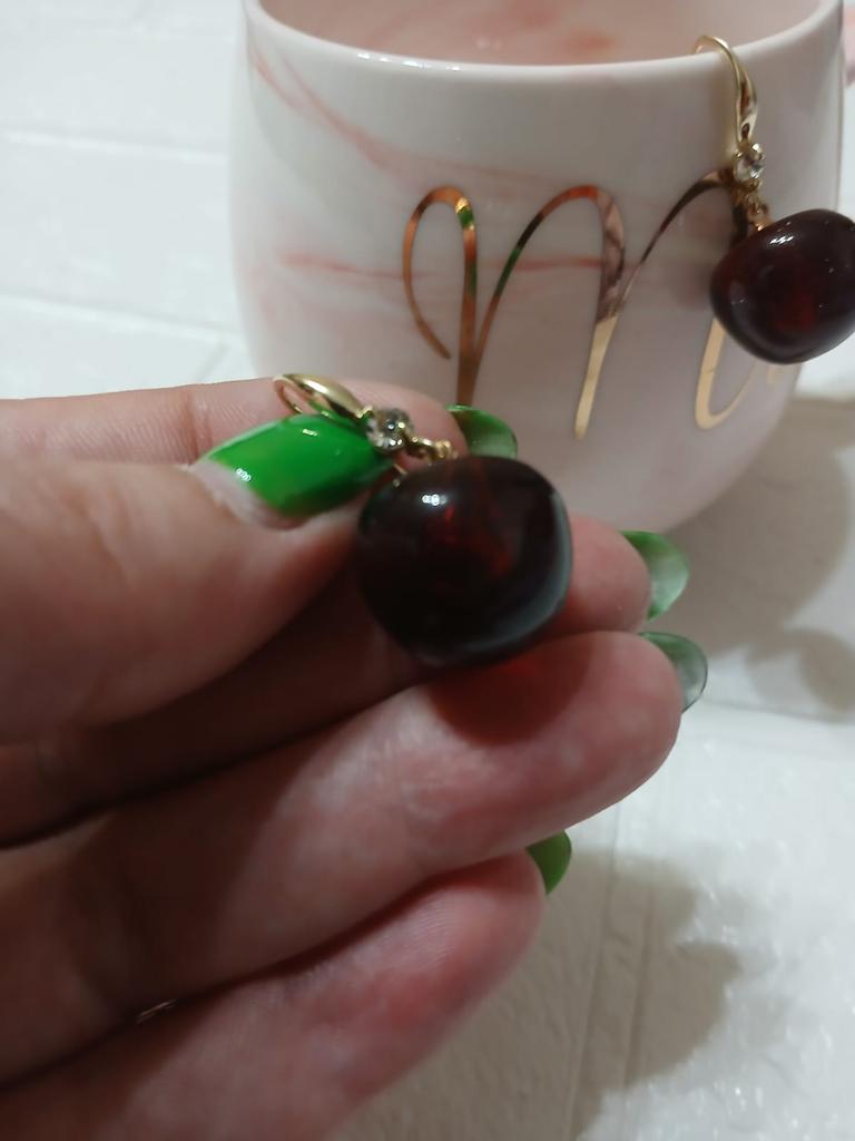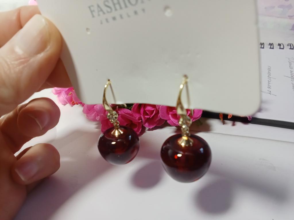 EARRINGS Adorable Cherry Drop Earrings, They arrived in Italy with tracked shipping in 16 days. Super fast shipping. Well wrapped in a sheet of bubble wrap they arrived intact. Packaging: They come in a plastic bag with a cardboard support. Excellent quality-price ratio. The metal color is silver zinc alloy. No glue stains and no defects. The purchase is recommended👌👌👌👌👌