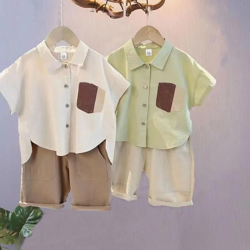 Boys' Shirt Suits Summer Clothes Baby Boys Cotton and Linen Short-sleeved Shirts Western-style Shirts