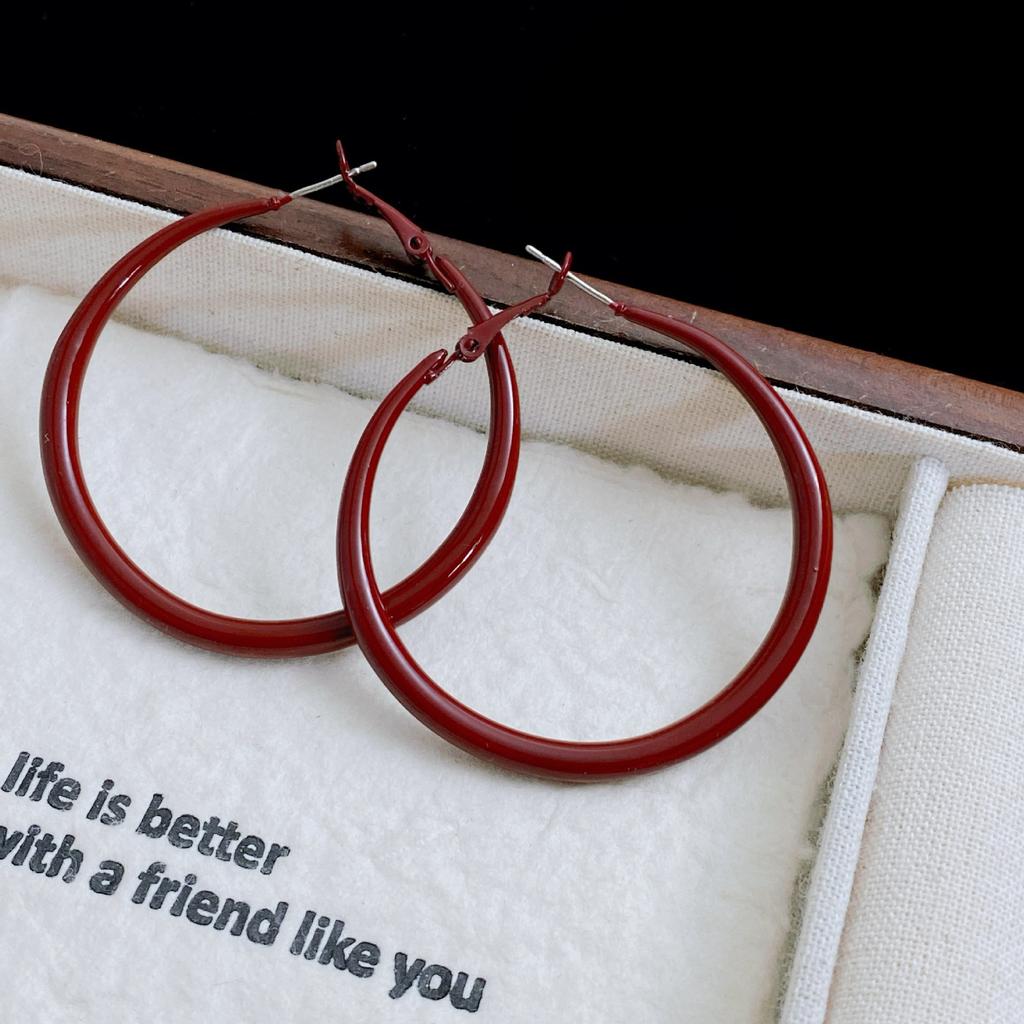 Ankela Red Big Round Hoop Earrings for Women Trendy Simple Hyperbole Geometric Circle Huggie Loop Jewelry Brincos Bijoux Gift