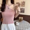 Summer New Fashion Girl Sexy Hollow Shoulder Cross-hanging Neck Slim Vest Careful Machine Irregular Sling