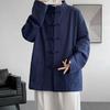 Men's Long-Sleeve Chinese Style Buttoned Linen Shirt Hanfu Tang Suit Plus Size Jacket