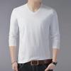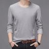 Men's White Long-Sleeve Solid Color T-Shirt, Spring/Autumn, Large Size