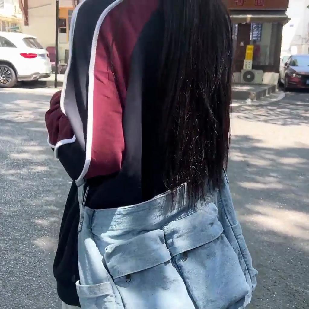 Denim Messenger Bag Women's Large Capacity Shoulder Bag Student Class Bag