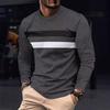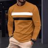 Men's Contrasting Striped Long Sleeved Round Neck T-shirt
