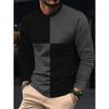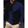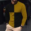 Men's Checkerboard Splicing Long Sleeved Trendy Round Neck T-shirt
