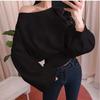 Spring Bat Sleeves Slanted One-length Neck Long Sleeve T-shirt for Women Solid Color Casual Top Design Sense Slit Bottom Shirt for Women