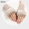 Outdoor Knitted Sheep Wool Exposed Finger Faux Rabbit Fur Wrist Gloves Couples Fingerless Mittens