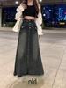 Women's High Waist A-Line Denim Skirt for Spring/Autumn 2024 with Raw Edge Detailing