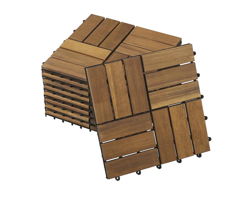 Made from wood and polypropylene, these tiles are designed to withstand outdoor conditions. Acacia wood is resistant to decay even when exposed to rain or moisture, making the tiles suitable for outdoor use in balconies, gardens, and other exterior areas.