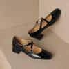 Genuine Leather Black Wine Red Women Pumps Med Heel Small Big Size 31 48