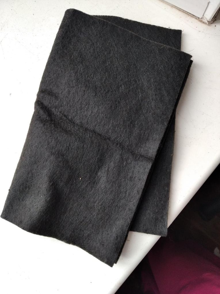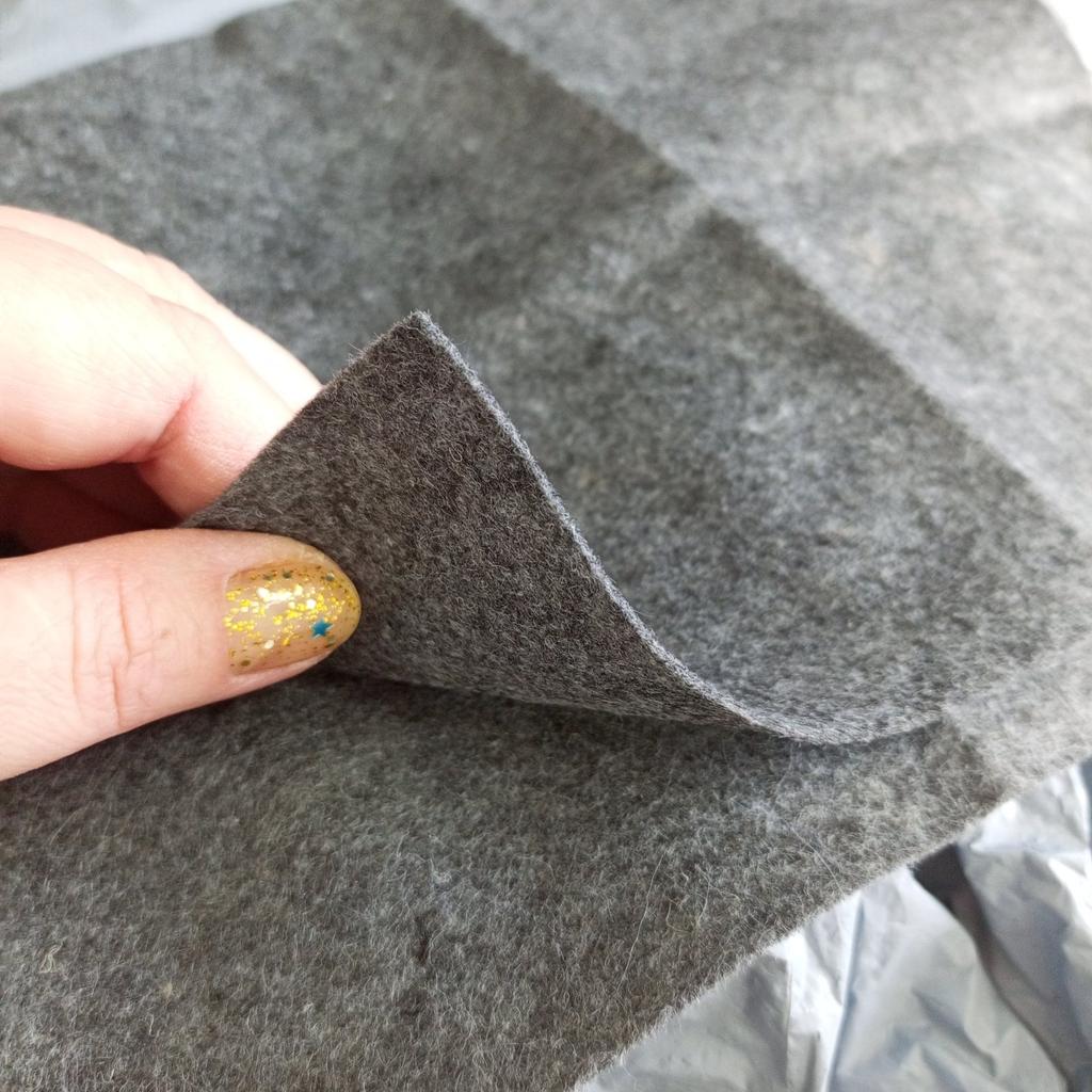 Ordinary felt, but it cleans well. Faucets and mirror.