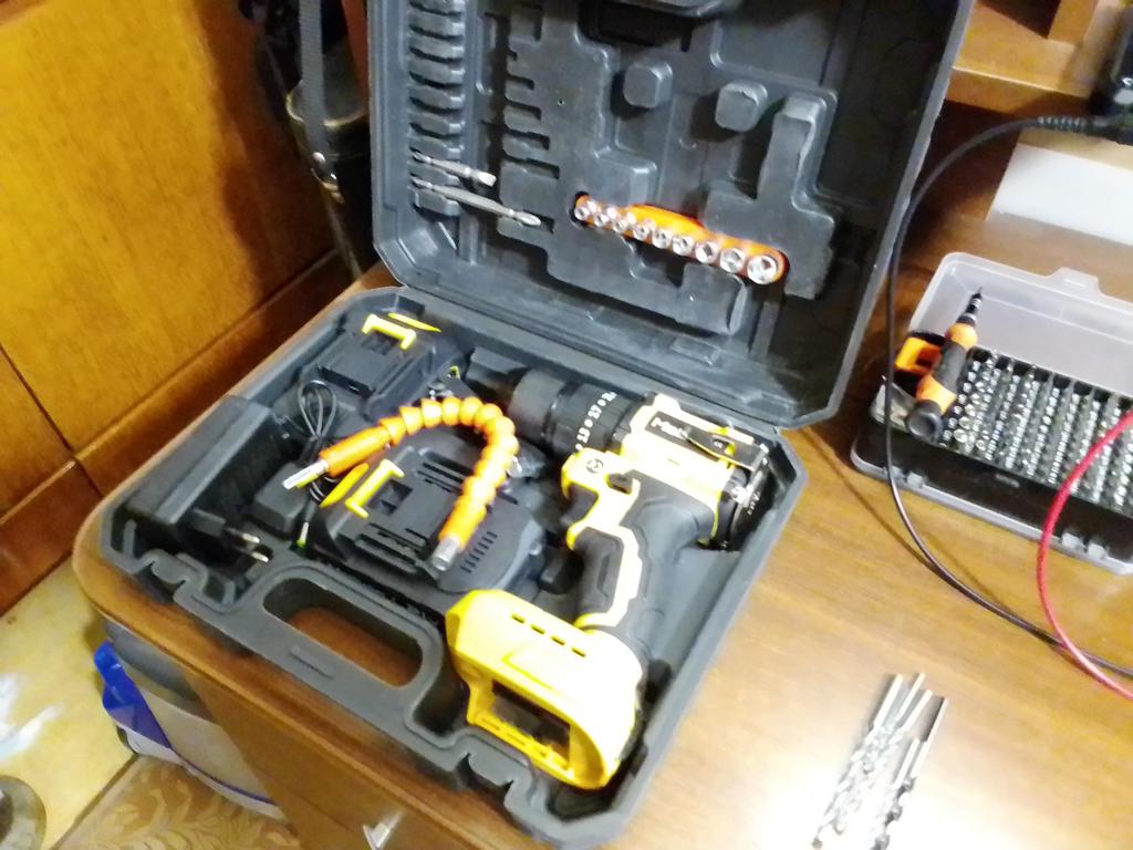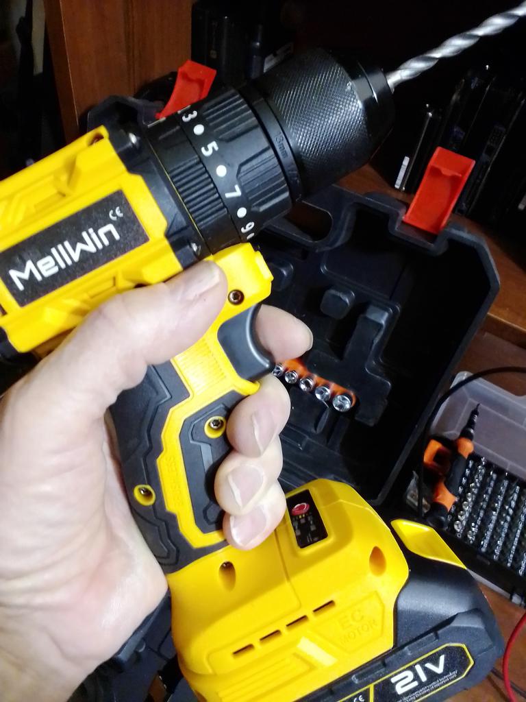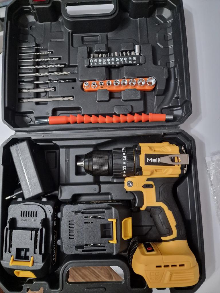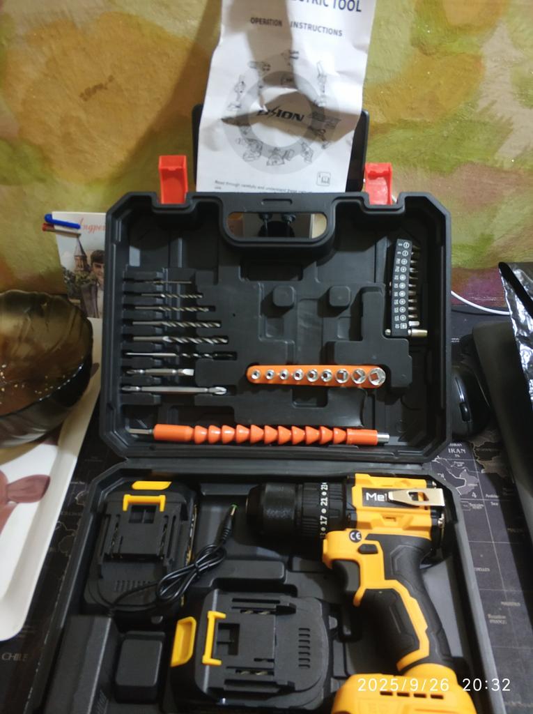 Everything arrived intact (the cardboard box took all the bumps of the journey). The drill (product) is miniature, lightweight, and the batteries are also not large in size. Designed for careful, gentle use. The set includes the necessary minimum of attachments. The charger rattles in the case as if it doesn't belong. There is one instruction for the entire line of tools of this brand. We will try it out in practice,
