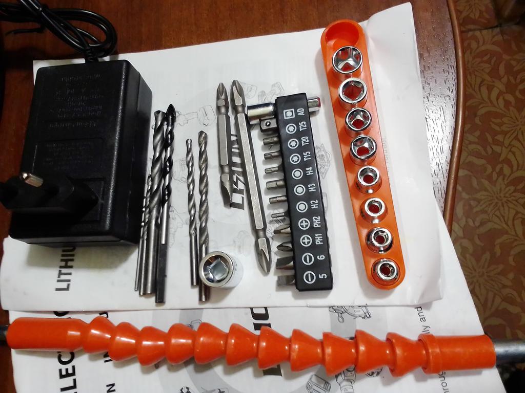 Ordered 17.08 Received 08.09 Wonderful screwdriver. There is something to hold in your hands. Everything according to the order. A bunch of different accessories: sockets, drills, screwdriver bits. Thank you very much I recommend