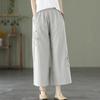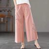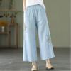 Fashion Women Embroidery High Waist Oversized Pants Summer Cotton Hemp Thin Elastic Band Loose Wide Leg Casual Straight Trousers