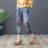 Fashion Women's Fall Stretch Elegant Jeans Women's Casual Flower Embroidery Jeans Women's Loose Harlem Pants