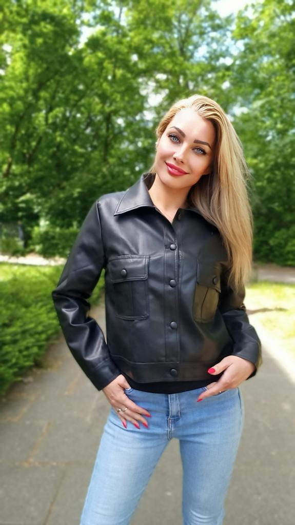 Short faux leather jacket 🥼, motorcycle jacket. 🔆Delivery time 🔆: 18 days to Germany. 🔆Scope of delivery 🔆: Included in the delivery is a beautiful jacket in the appropriate size. This product is only available in black. It is available in sizes S to 4XL.. I ordered it in size L and the jacket 🧥 fits me perfectly! The jacket runs small, so I recommend ordering two sizes larger. I normally wear a size S (36). I weigh 55 kg and am 167 cm tall.. QUALITY 🔆: The jacket has excellent quality, very well made, without unpleasant chemical smell, with buttons and 2 pockets. The product arrived with the label, which I find very important. Material composition: Polyester, synthetic leather. ✅️In summary, it's a beautiful faux leather jacket 🧥👍👍👍🔝 that runs small. 👍👍🔝You have to order two sizes larger. I also received a small gift 🎁, a scarf, thank you so much for that!😘🙏🙏 Thank you Joom and the seller! 5 Stars! 🌟🌟🌟🌟🌟❗️❗️❗️❗️ I would be happy to recommend the product!👍🔝🔝🔝🔝✅️👌
