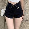 Women's Large Black Wide-Leg Drawstring Zipper A-Line High Waist Casual Shorts - Spring/Summer 2025