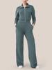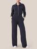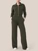 2024 Women's Long-Sleeve Wide-Leg Jumpsuit with Zipper and Lapel Sweater Design