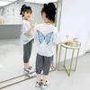 Girls Spring Summer Round Neck Short Sleeve Top + Plaid Shorts Sports Two Piece Set