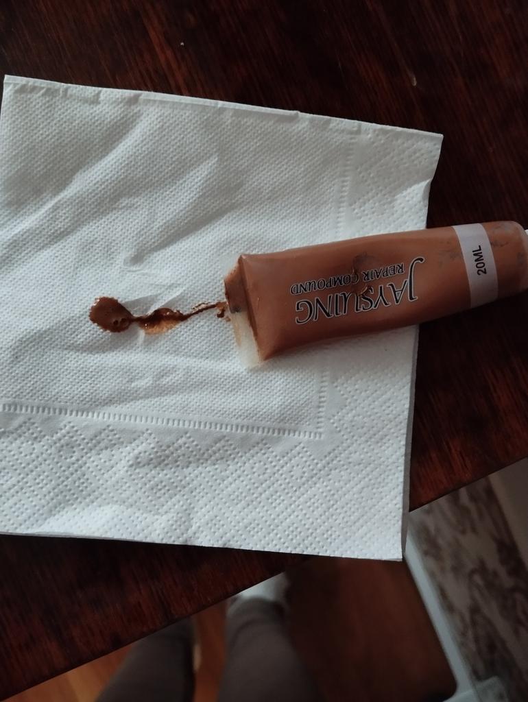 All the glue has dried, I have to pull it out with a toothpick, the liquid glue comes out at the seam, and there is still dried glue there