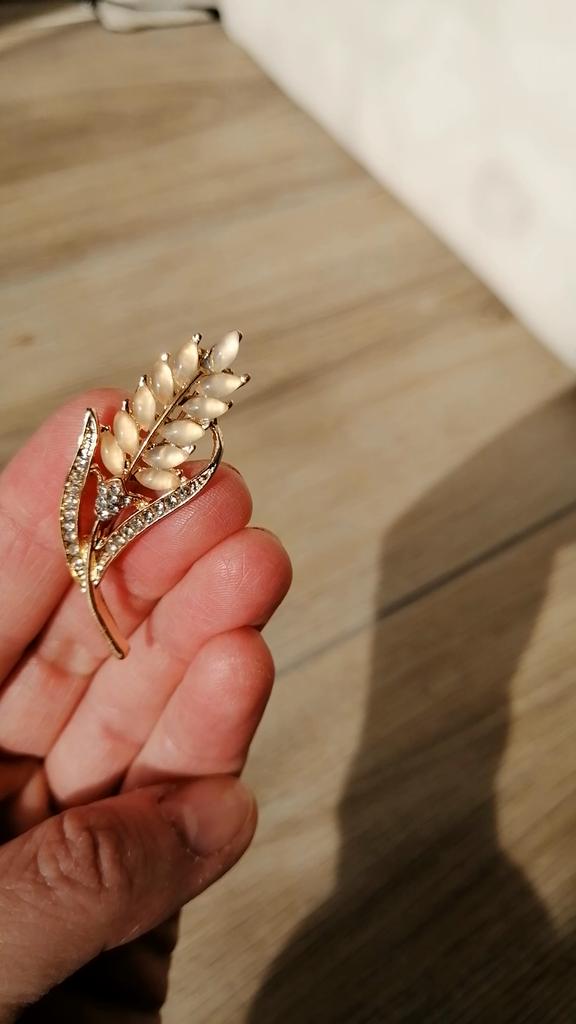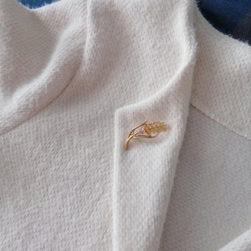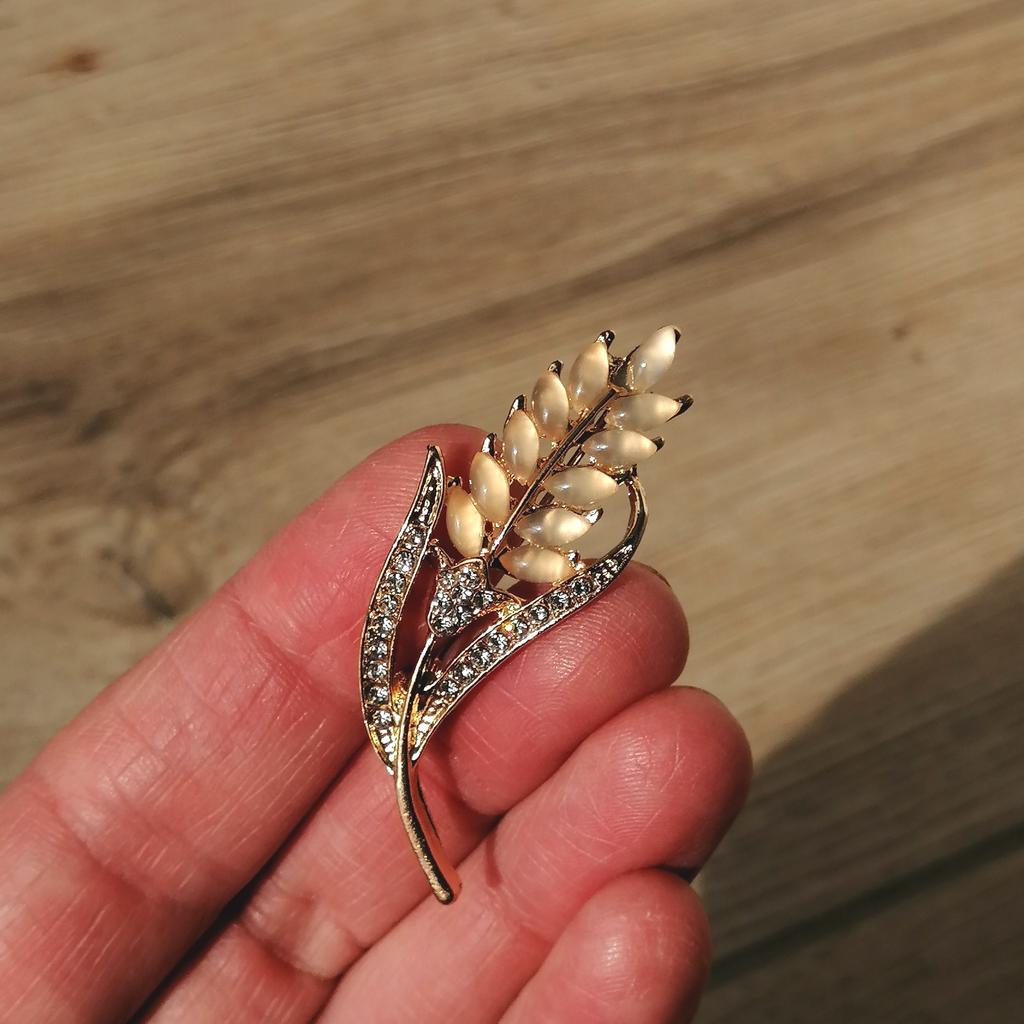 BROOCH Beautiful pin in the shape of an ear of wheat. It will be perfect on the lapel of a jacket, on a sweater and even on a knitted hat 😍 The brooch arrived in Italy with tracked shipping within 15 days. Well packed in a bubble wrap envelope, it arrived intact.. Packaging: transparent plastic bag without cardboard support She's very pretty 😍😍😍😍 The brooch has the shape of an ear of wheat and is set with crystals for added brightness.. Very bright and elegant. The material of the brooch is gold color zinc alloy. The rear closure is in perfect working order. Dimensions approx. 4 cm x 2 cm. The brooch has no flaws, no glue stains. the crystals are perfectly set and firm. I am really satisfied with the purchase also because they have a really affordable price. Recommended purchase 👍 The seller quickly shipped the goods.