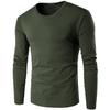 Men's Long-Sleeve Slim Fit Round Neck Cotton T-Shirt - Solid Color Autumn/Winter Collection